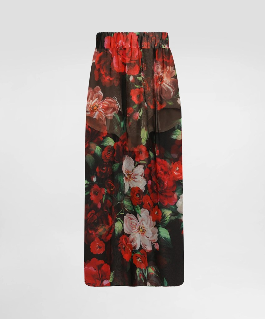 #8 Rose-Print Chiffon Calf-Length Skirt: