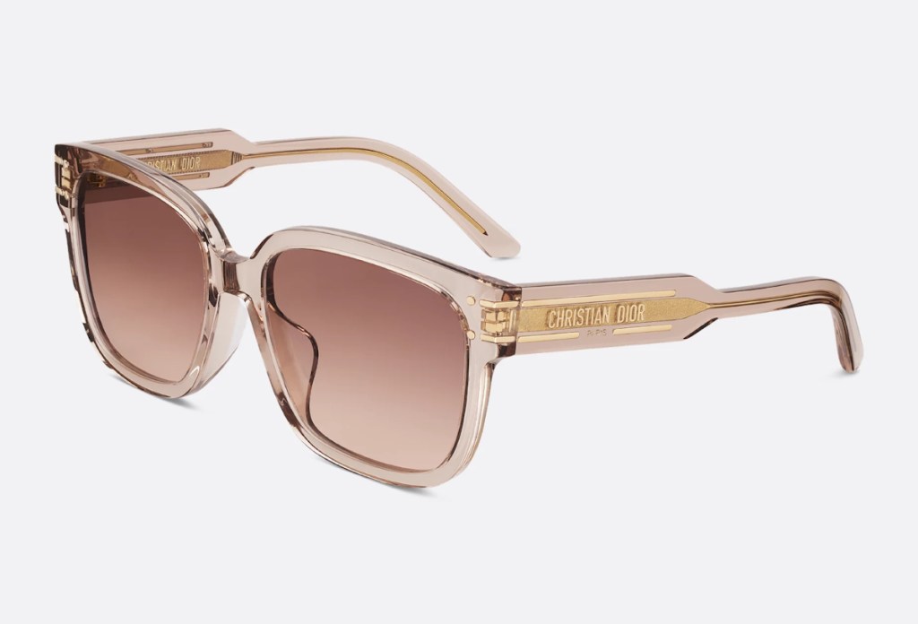 Transparent sand beige acetate frame. Gradient brown-to-pink lenses (Priced at $590.00).